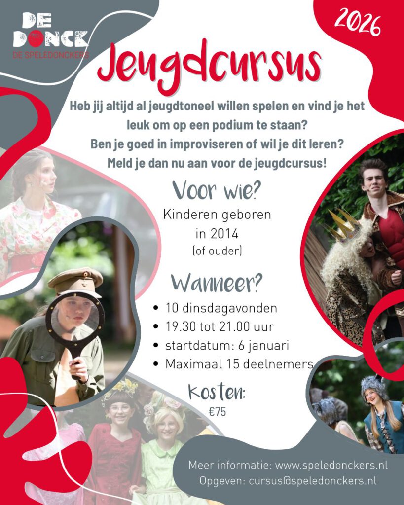 Vanaf  6 januari 2026 organiseert toneelvereniging De Speledonckers uit Someren de cursus jeugdtoneel voor kinderen die nu in groep 8 zitten.