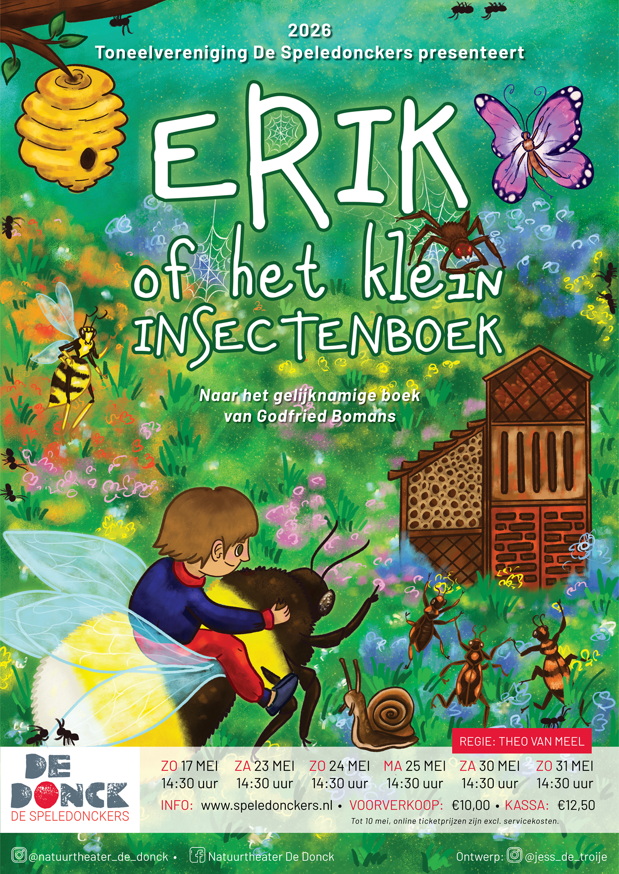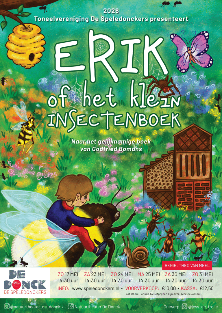 Toneelvereniging De Speledonckers presenteert Erik of het klein insectenboek, vanaf 17 mei 2026 te zien in natuurtheater De Donck in Someren.